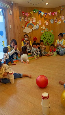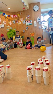 おともだちがボーリングする様子も応援して、大盛り上がりのおたのしみ会になりました!!