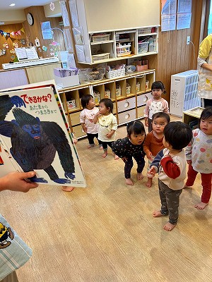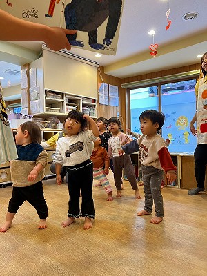 みんなで「できるかな?」の絵本を見ながら踊っています🎵