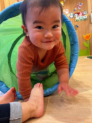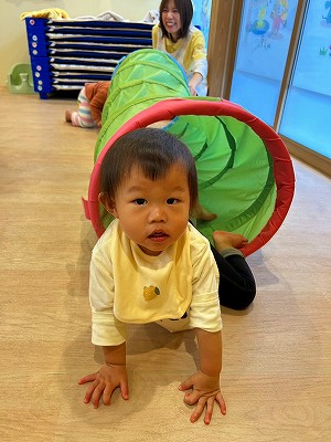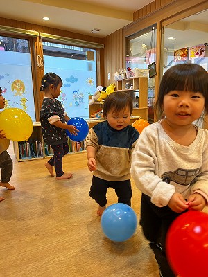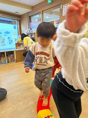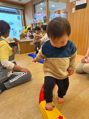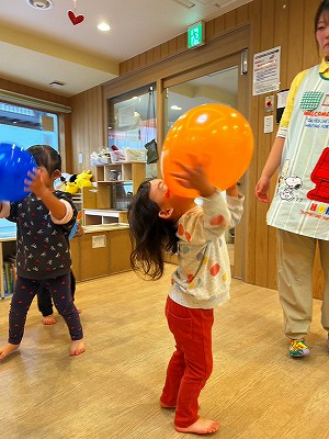 そのあとは1,2歳と0歳児と別れて平均台をしたりトンネル潜りや風船遊びをしました!