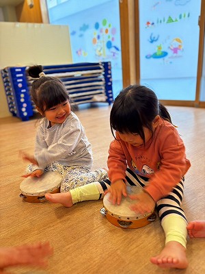 タンバリンにカスタネット、鈴などの楽器を鳴らすのはお手のもの✨