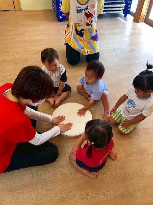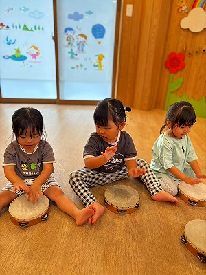 鈴やカスタネット、タンバリンなどの楽器を鳴らしたり、