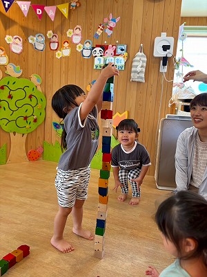 シフォンやフープ、電車ごっこ、積み木を使った遊びもありました!