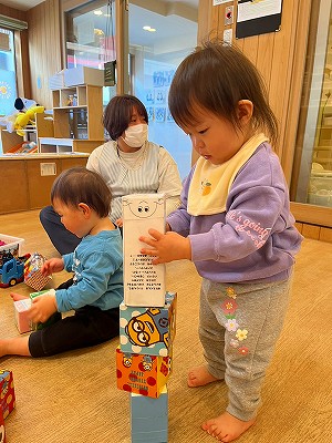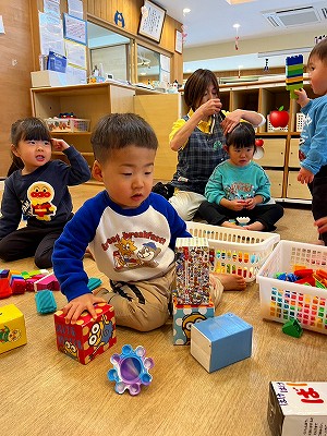 積み木やブロックで遊んだり、絵本を見たり