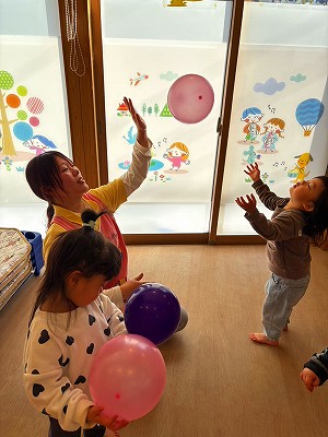 今日はお部屋で風船遊びを楽しみました🎈