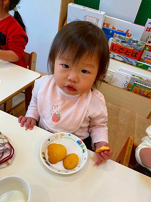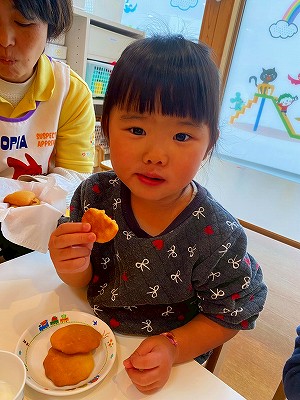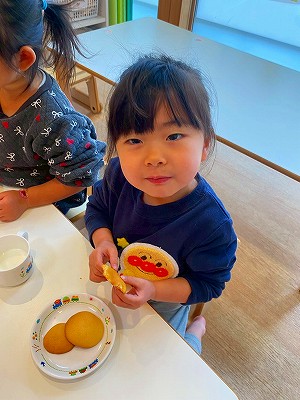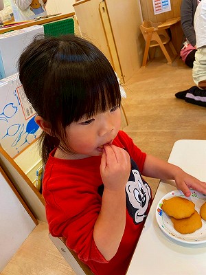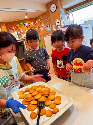 色々な大きさがあったり、形がわかりづらくなっているものもありましたが、子どもたちが作ったクッキーはとっても美味しく、ぱんだ組さんも満足そうなお顔でした!