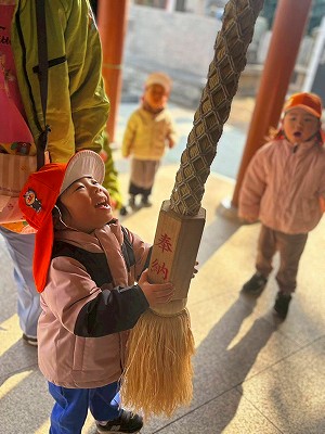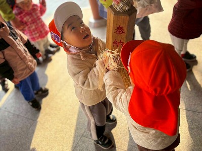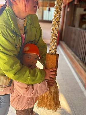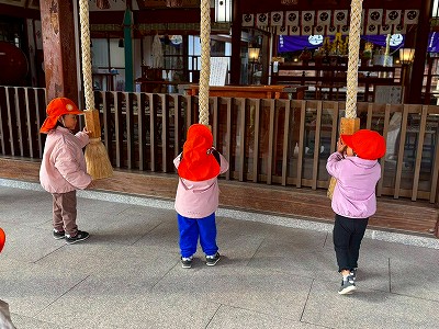 園から少し距離のある神社ですがちゃんと手をつなぎ