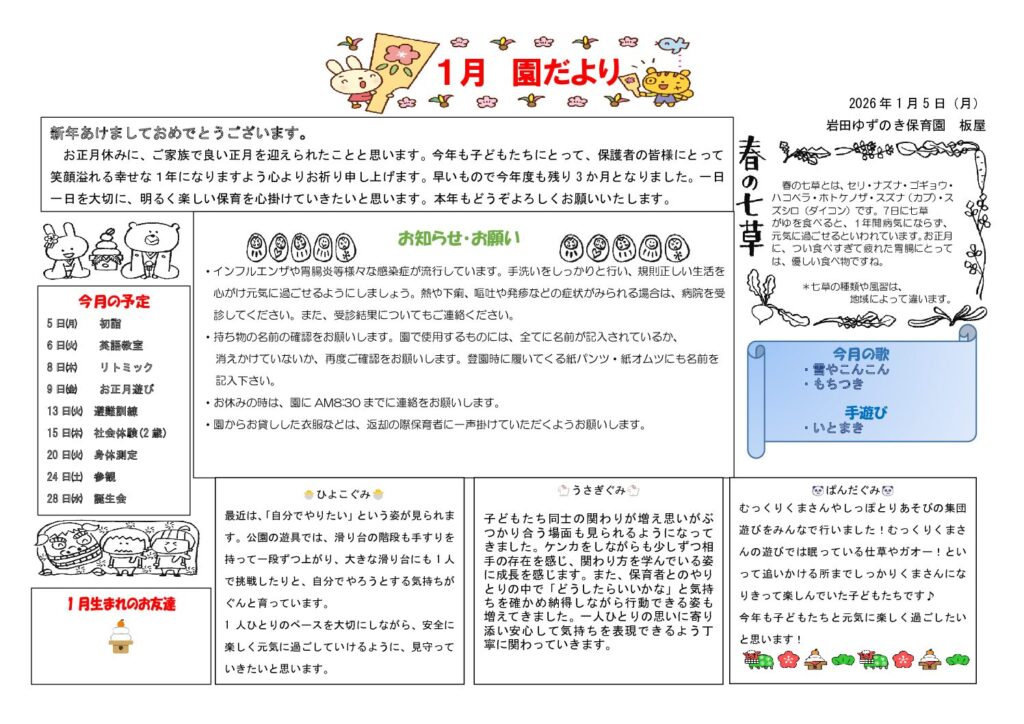1月園だよりです☆ぜひご覧ください♫